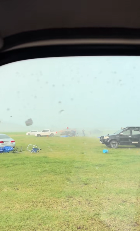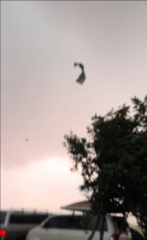 จากคลิปที่ถูกบันทึกไว้ ขณะที่พายุเคลื่อนตัวเข้ามาด้วยความเร็วและรุนแรง ทำให้เต็นท์ ร้านค้า และข้าวของเครื่องใช้ต่างๆ ถูกลมพัดปลิวกระจายไปทั่วบริเวณ แต่ที่น่าตกใจที่สุดคือ ความแรงของพายุถึงขนาดพัดร่างของคนให้ลอยและถูกซัดไปตามกระแสลมด้วยเช่นกัน จนเกิดความแตกตื่นและต้องรีบหาทางเอาตัวรอดกันอย่างอลหม่าน