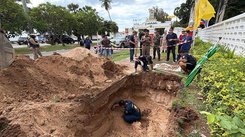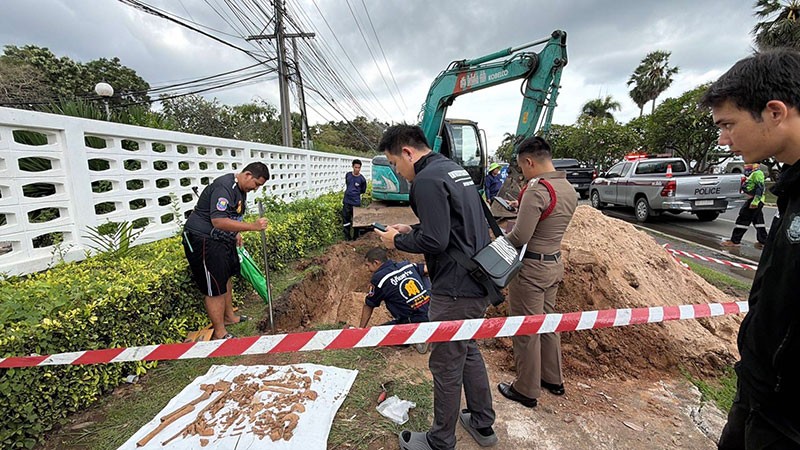 วันที่ 13 ตุลาคม พ.ศ. 2568 เวลา 10.00 น. ร.ต.อ.คุณาธิป ขุ่ยคำมี รองสารวัตร (สอบสวน) สถานีตำรวจภูธรสัตหีบ จังหวัดชลบุรี รับแจ้งพบโครงกระดูกมนุษย์ฝังอยู่ในดินบริเวณหน้าโรงพยาบาลอาภากรเกียรติวงศ์ ภายในฐานทัพเรือสัตหีบ ตำบลสัตหีบ อำเภอสัตหีบ จึงรุดไปตรวจสอบพร้อมชุดสืบสวน และเจ้าหน้าที่หน่วยกู้ภัยมูลนิธิสว่างโรจนธรรมสถาน