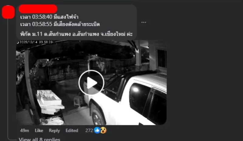 ไม่นานหลังจากโพสต์ดังกล่าว ประชาชนจากหลายพื้นที่ เช่น อำเภอดอยสะเก็ด และ อำเภอสันกำแพง ต่างส่งข้อมูลเข้ามาอย่างต่อเนื่อง โดยผู้ใช้เฟซบุ๊กรายหนึ่งในพื้นที่สันกำแพงได้โพสต์คลิปวิดีโอ พร้อมระบุเวลาอย่างชัดเจนว่า เวลา 03.58 น. มีแสงสว่างวาบบนท้องฟ้า จากนั้น อีกประมาณ 15 วินาทีต่อมา 03.58 น.ได้ยินเสียงดังสนั่นตามมา เหตุการณ์ดังกล่าวสร้างความตื่นตระหนกและความสงสัยในวงกว้าง ขณะที่หลายคนเชื่อว่าอาจเป็น อุกกาบาต ตกลงในเขตภาคเหนือ
