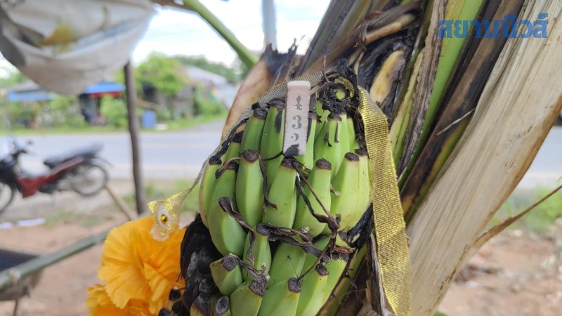 แต่ต้นนี้ออกมาแปลกๆ ซึ่งทำเอาชาวบ้านหลายคนต่างมีความเชื่อว่าต้นกล้วยต้นนี้ต้องให้โชค จากนั้นก็ไม่พลาดพากันนำผ้าสามสีพร้อมธูปเทียนมากราบไหว้ขอโชคจากต้นกล้วย ได้เลขจากธูปมงคล 432 และนับหวีกล้วยได้ 12 หวี ส่วนลูกกล้วยนั้นไม่สามารถนับได้เพราะลูกมันยังเล็ก