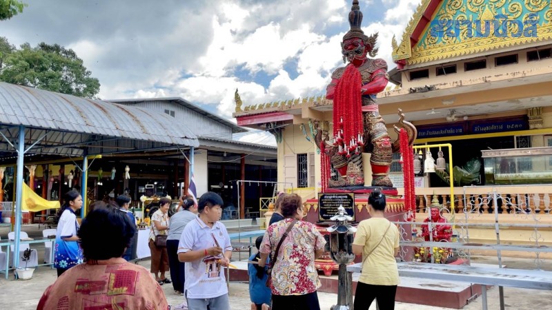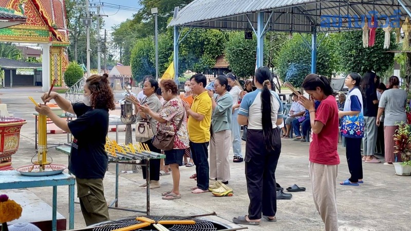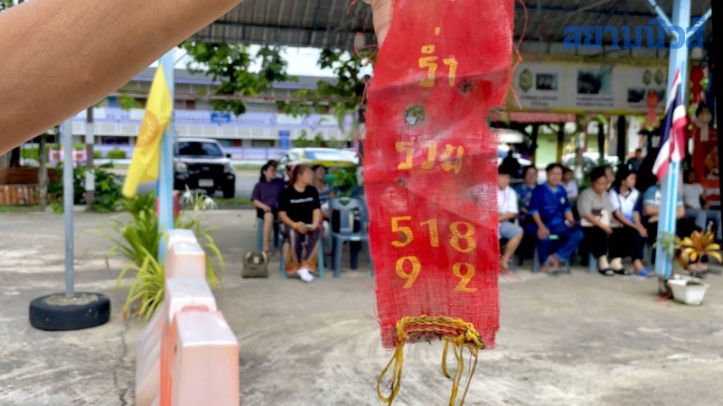 ซึ่งการทำพิธีจะให้ผู้เข้าร่วมพิธีจุดธูป-เทียน และอธิฐานขอพรองค์ท้าวเวสสุวรรณก่อนอาบน้ำมนต์ ขอให้การงานเปิด ดวงชะตาเปิด ชีวิตเปิด มีเงิน มีงาน มีช่องทางทำมาหากิน ลูกจะนำเงินไปสร้างบุญกุศล สร้างกรรมดีต่อไป จากนั้นชาวบ้านได้จุดประทัดถวายองค์ท้าวเวสสุวรรณ ชาวบ้านไม่พลาดส่องเลขหางประทัดเป็นเลข 518 , 92 และเลขธูปเสี่งทายเป็นเลข 916 ชาวบ้านได้ถ่ายรูปเก็บไว้และจะนำไปเสี่ยงโชคในงวดที่จะถึงนี้