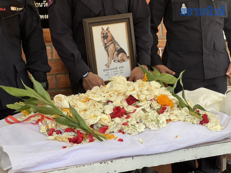 เมื่อเวลา 09.00 น. วันที่ 17 ต.ค. 2568 ที่ลานอนุสาวรีย์สุนัขตำรวจเอ๊กซ์ กองกำกับการสุนัขตำรวจ กองบังคับการสายตรวจและปฏิบัติการพิเศษ 191 (บก.สปพ.) ถนนวิภาวดีรังสิต พล.ต.ต.วรวิทย์ ญาณจินดา ผู้บังคับการ บก.สปพ. เป็นประธานในพิธีไว้อาลัยและเคลื่อนย้ายร่าง ตำรวจตรีซาโบ้ สุนัขตำรวจพันธุ์เยอรมันเชพเฟิร์ด เพศผู้ สีดำ - น้ำตาล ซึ่งปฏิบัติหน้าที่ในสายงานค้นหาวัตถุระเบิดมายาวนานกว่า 5 ปี ก่อนเสียชีวิตด้วยอาการเจ็บป่วยเมื่อวันที่ 9 ตุลาคมที่ผ่านมา ท่ามกลางบรรยากาศสงบและโศกเศร้าของเจ้าหน้าที่ เพื่อนสุนัขตำรวจ และประชาชนผู้ติดตามผลงาน