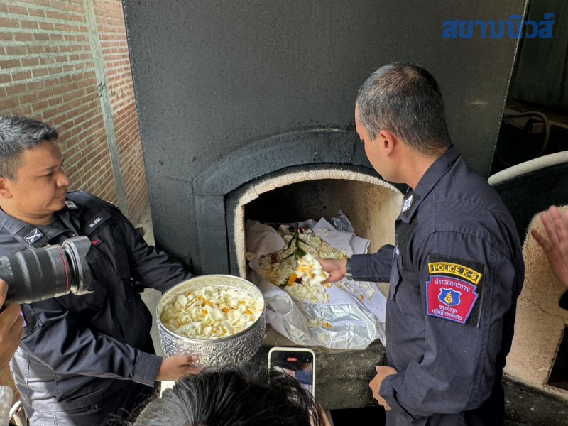ภายหลังเสร็จพิธีที่ บก.สปพ. เจ้าหน้าที่ได้เคลื่อนร่างสุนัขตำรวจตรีซาโบ้ไปประกอบพิธีฌาปนกิจที่วัดผาสุกมณีจักร จังหวัดนนทบุรี โดยมีพระสงฆ์ทำพิธีบังสุกุล และผู้ร่วมงานยืนสงบนิ่งไว้อาลัย ก่อนปิดฝาโลงและจุดเพลิงท่ามกลางบรรยากาศโศกเศร้า
