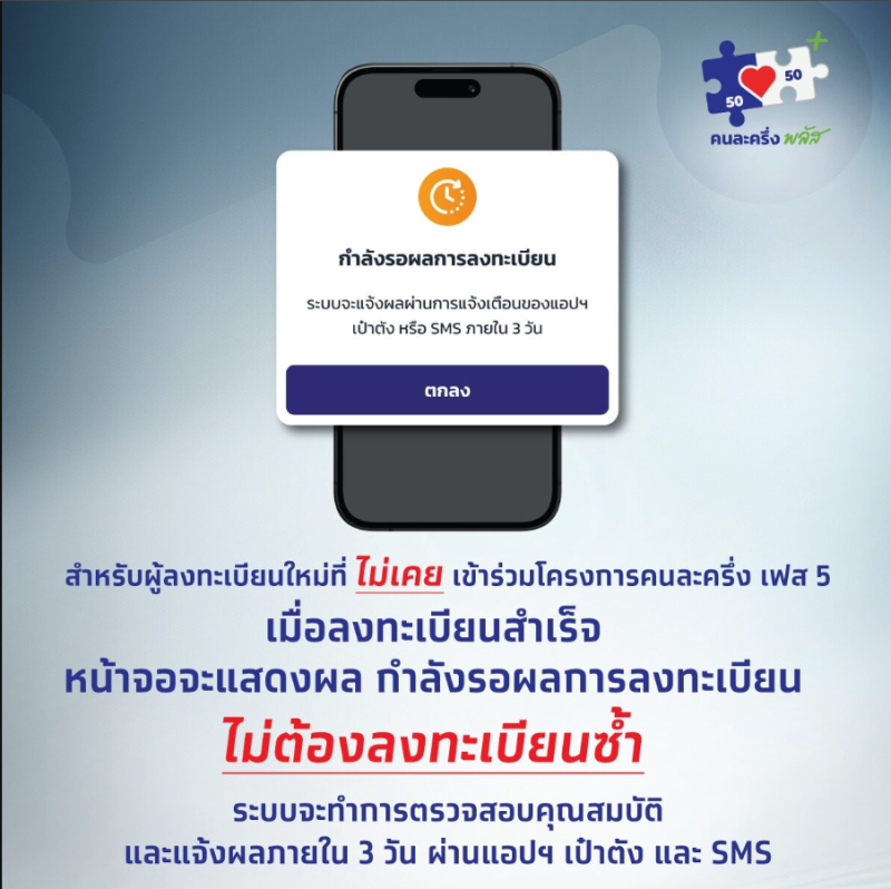 ลงทะเบียนคนละครึ่งพลัส ขึ้นข้อความนี้ เช็กเลยได้หรือไม่ได้รับสิทธิ