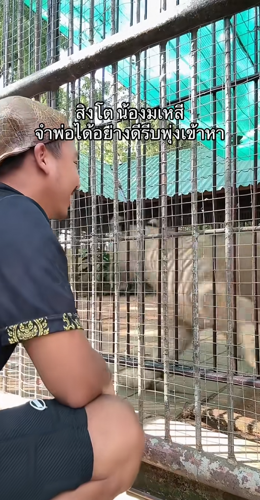 แม้เจ้าหน้าที่จะไม่อนุญาตให้เข้าไปในกรง เจ้าของก็ยังพยายามสื่อสารกับเจ้ามเหสีจากด้านนอก ทั้งลูบหัวและเกาคางผ่านกรง ขณะที่เจ้ามเหสีเองก็แสดงอาการอ้อนเจ้าของไม่หยุด ทำให้เห็นถึงความผูกพันระหว่างมนุษย์กับสัตว์ป่าที่เคยเติบโตมาด้วยกัน