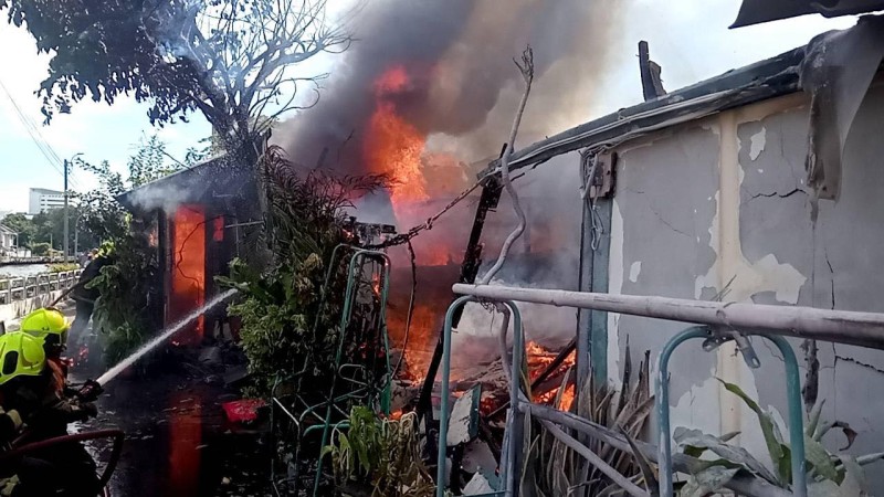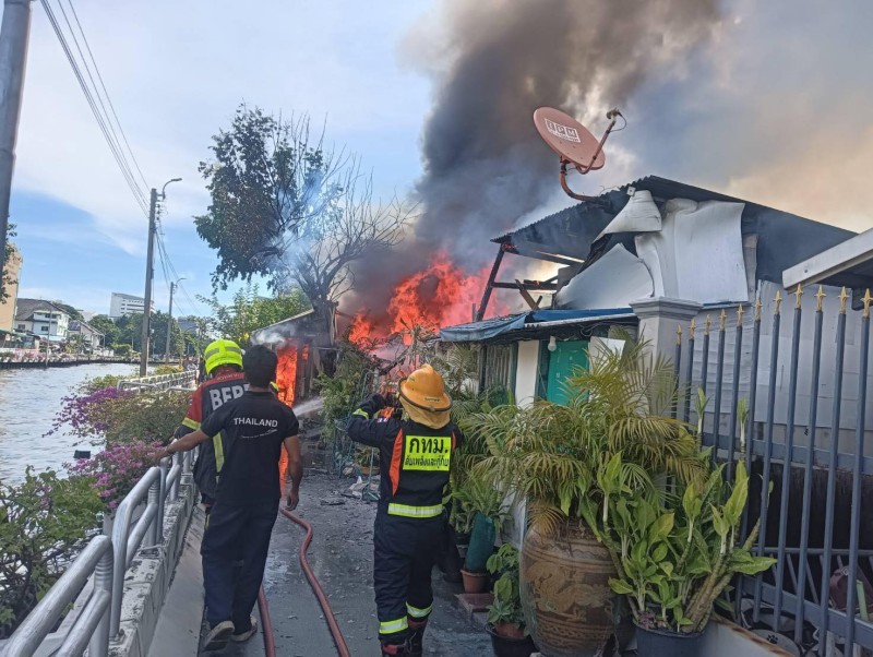 ต่อมาเวลา 09.17 น. เจ้าหน้าที่ดับเพลิงถึงที่เกิดเหตุ พบเป็น บ้านไม้ปลูกติดกันหลายหลัง มีเปลวไฟลุกไหม้อย่างรุนแรงและมีควันดำพวยพุ่งขึ้นเหนือชุมชน เจ้าหน้าที่จึงเร่งดำเนินการฉีดน้ำสกัดเพลิง เพื่อป้องกันไม่ให้ลุกลามไปยังบ้านข้างเคียง