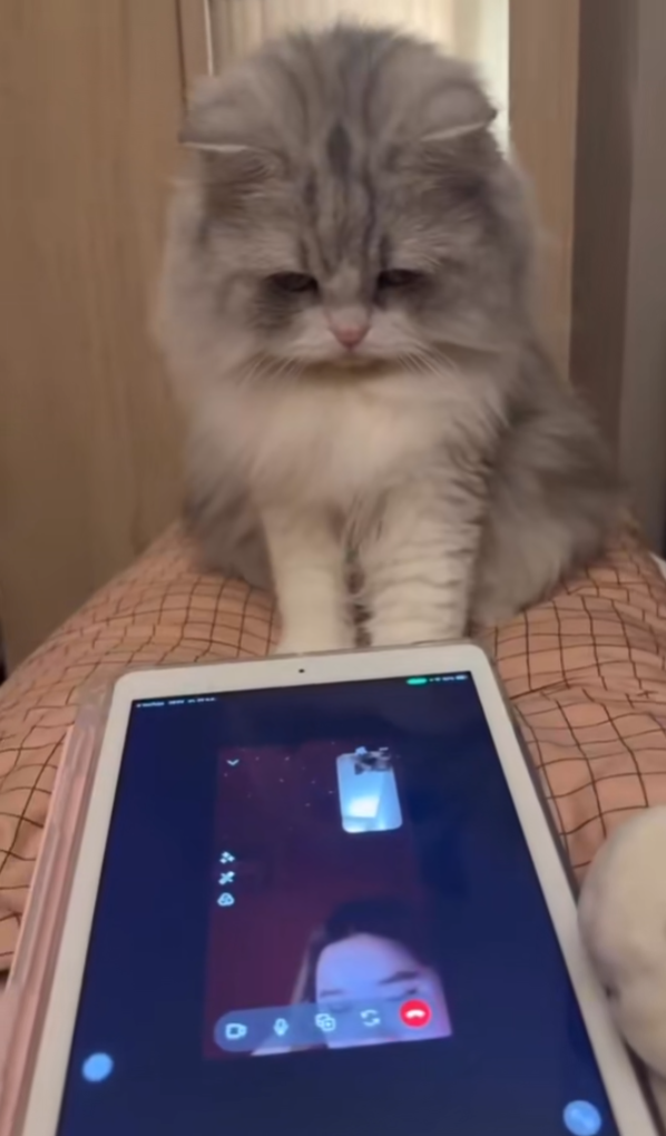 แต่สิ่งที่เกิดขึ้นกลับกลายเป็นโมเมนต์สุดฮา ทันทีที่ได้ยินเสียงนั้น เจ้าแมวรีบกระโจนไปแตะปุ่ม วางสายรัวๆ จนสายหลุดไปจริงๆ คุณแม่ถึงกับหัวเราะไม่หยุด ส่วนเจ้าเหมียวก็ยังคงจ้องหน้าจอโทรศัพท์เหมือนจะบอกว่า อย่ามาเหมียวใส่ฉันอีกนะ งานนี้บอกเลยว่าเจ้าแมวตัวนี้อาจจะแค้นเพื่อนคุณแม่อยู่ก่อนแล้วก็เป็นได้นะ