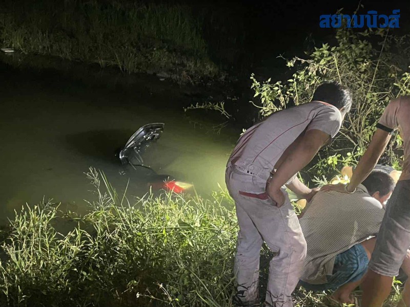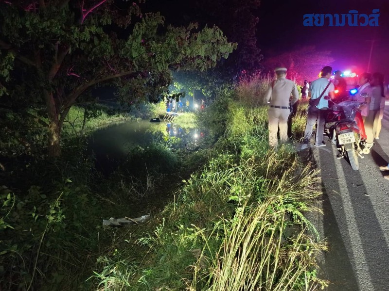 ที่เกิดเหตุพบประชาชนยืนมุงดูเหตุการณ์บริเวณริมถนนซึ่งเป็นทางแคบและมืด ไม่มีไฟส่องสว่าง เบื้องต้นพบรถยนต์เก๋ง นิสสัน อัลเมร่า สีดำ จมอยู่ในน้ำลึกประมาณ 2 เมตร ห่างจากถนนประมาณ 10 เมตร โดยพลเมืองดีที่อยู่ใกล้เคียงได้เข้าช่วยเหลือนำร่างผู้ประสบเหตุออกจากตัวรถก่อนเจ้าหน้าที่เดินทางมาถึง พบผู้เสียชีวิตทั้งหมด 4 รายทราบชื่อ