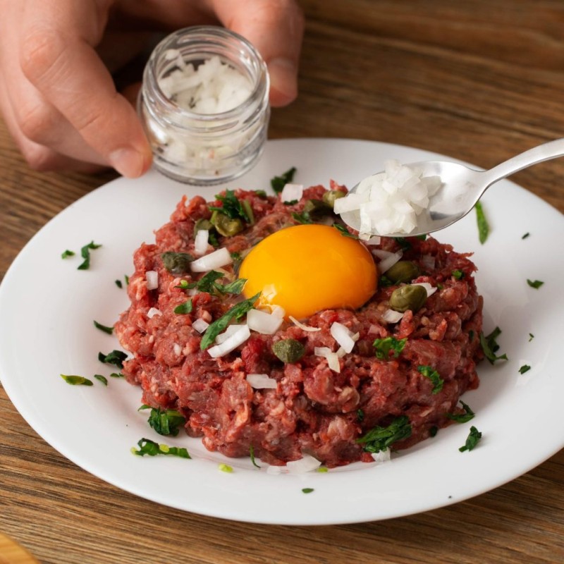 เนื้อหมู เนื้อวัว เนื้อไก่ ที่ไม่ผ่านการปรุงสุกอย่างเต็มที่ อาจมี เชื้อแบคทีเรีย เช่น ซัลโมเนลลา (Salmonella) อีโคไล (E. coli) หรือลิสทีเรีย (Listeria) ปนเปื้อน ซึ่งเป็นสาเหตุของอาหารเป็นพิษรุนแรง มีไข้สูง ท้องเสียรุนแรง หรือแม้กระทั่งติดเชื้อในสมอง โดยการป้องกัน คือ ก่อนทานต้องแน่ใจว่าเนื้อสัตว์ทุกชนิดได้รับการปรุงสุกทั่วถึง ไม่มีสีแดงหรือชมพูอยู่ภายใน ควรใช้เขียงและอุปกรณ์แยกกันสำหรับอาหารดิบและอาหารสุก