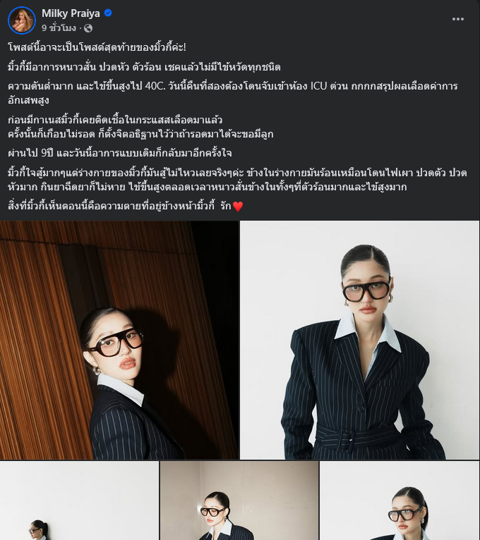 เมื่อวันที่ 26 ตุลาคม 2598 ที่ผ่านมา เฟซบุ๊ก Milky Praiya หรือ มิ้วกี้ไปรยา ยูทูบเบอร์สาวชื่อดัง ได้ออกมาโพสต์ภาพพร้อมข้อความระบุว่า โพสต์นี้อาจะเป็นโพสต์สุดท้ายของมิ้วกี้ค่ะ!