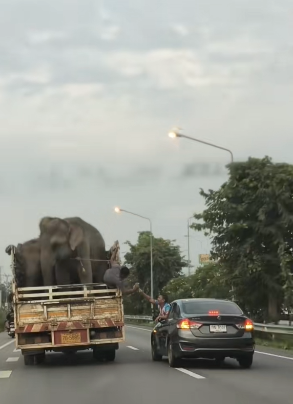 เมื่อวันที่ 28 ตุลาคม 2568 ที่ผ่านมา ได้เกิดเรื่องราวสุดใจฟูในโลกออนไลน์ หลังจากผู้ใช้ TikTok nongfour2000 ได้โพสต์คลิปเผยให้เห็นภาพรถคันหนึ่งที่มีช้างสองตัวอยู่ด้านหลังกำลังเดินทางพร้อมพี่เลี้ยง ระหว่างนั้นมีรถเก๋งคันหนึ่งขับตามมาและเล่นหยอกล้อกับช้างทั้งสองอย่างเอ็นดูตลอดทาง