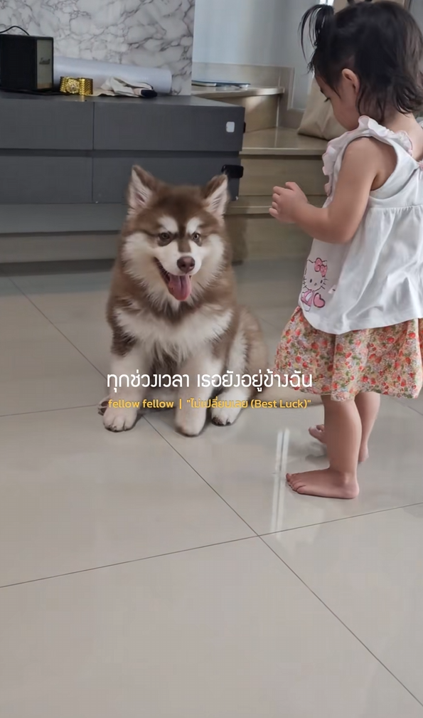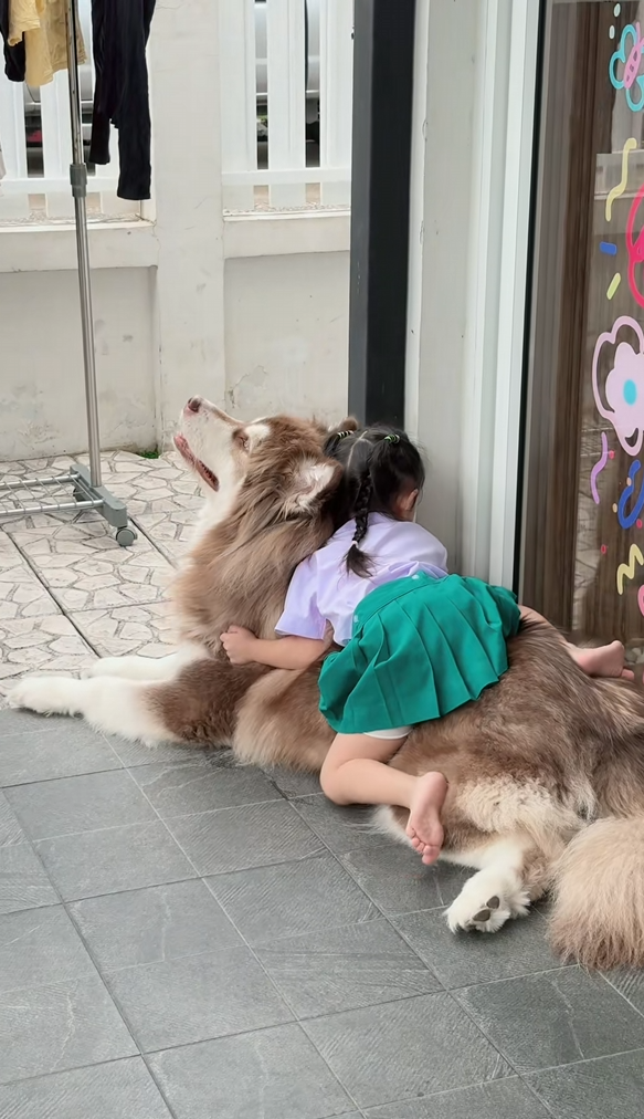 เมื่อวันที่ 10 กันยายน 2568 ที่ผ่านมาได้เกิดเรื่องราวสุดเอ็นดูในโลกออนไลน์ เมื่อมีผู้ใช้ TikTok good.dog14 ได้โพสต์คลิปเผยให้เห็นภาพลูกสาวของเธอกำลังนอนเล่นทับเจ้า หมาอลาสกันไจแอนท์ ตัวโตอย่างน่ารักสุดๆ โดยเจ้าหมานิ่งไม่ขยับไปไหนเลย เพราะทั้งคู่เติบโตมาด้วยกันตั้งแต่ยังเล็ก ตอนนั้นเจ้าหมามีขนาดพอๆ กับลูกสาวของเธอ แต่ตอนนี้กลับโตจนตัวใหญ่กว่ามาก