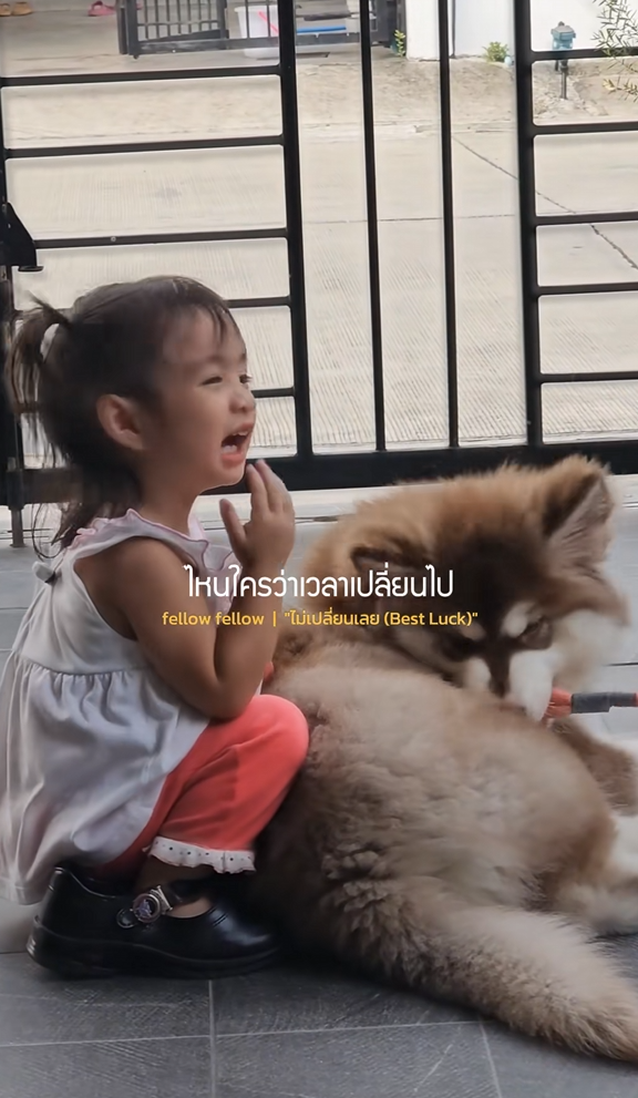 ทว่าก็ยังยอมให้เด็กหญิงตัวน้อยทับนอนเล่นด้วยอย่างสบายใจเหมือนเดิม แสดงให้เห็นถึงมิตรภาพระหว่างคนกับสัตว์เลี้ยง ที่เติบโตเคียงข้างกันมาตลอดเวลา เป็นมิตรภาพที่ทั้งน่ารักและน่าประทับใจจนชาวเน็ตต่างพากันหลงรัก