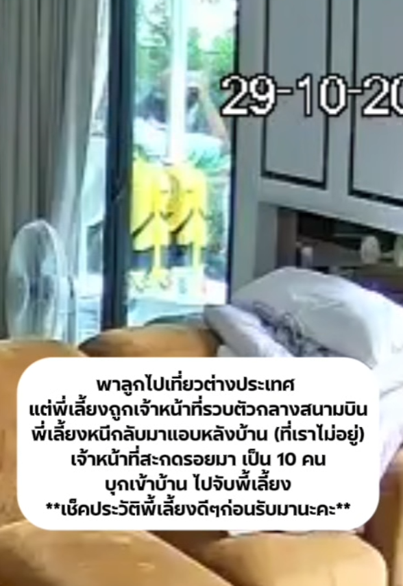 ไม่ใช่ทุกคนที่ตั้งใจร้าย แต่คงไม่มีแม่คนไหน อยากรับพี่เลี้ยงที่มีดคีติดตัว ยังคุยกันอยู่เลย ถ้าเราไม่พาพี้เลี้ยงไปสนามบิน คงไม่รู้ว่าคนที่รับเขัามา มีคดีติดตัว เช็กให้รอบก่อนเสมอนะคะ