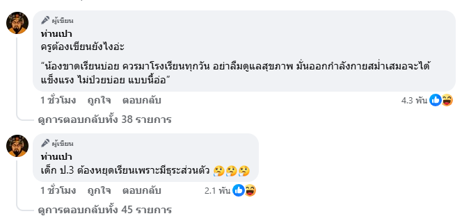 ผมไม่ได้ถูกอาชีพอะไรนะครับ แต่อยากให้เลิกตัดสินเด็กเพียงเพราะเรียนไม่เก่งหรือหยุดบ่อย ลูกผมเรียนไม่เก่ง แต่ผมก็ไม่เคยสร้างความเดือดร้อนให้ใคร