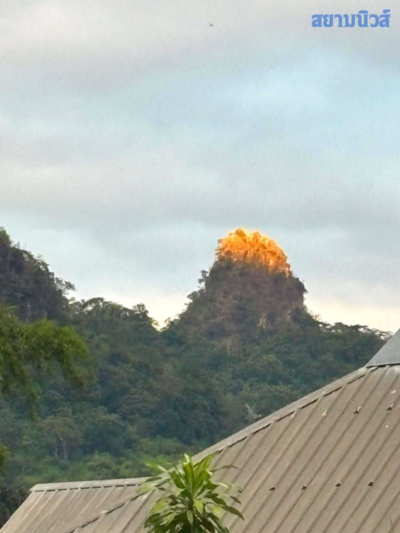 จากกรณี เฟซบุ๊ก ฟาร์มอ้น สังขละบุรี ได้โพสต์ เกิดปรากฏการณ์แปลกประหลาดยอดเขาแหลม กลายเป็นสีทอง ตำบลท่าขนุน อำเภอทองผาภูมิ จังหวัดกาญจนบุรี ซึ่งสามารถมองเห็นด้วยตาเปล่าชัดเจนนานถึง 5 นาที ก่อนที่จะกลับสู่สภาพเดิม โดยมีนักท่องเที่ยวเดินทางมาเที่ยวอำเภอทองผาภูมิได้ถ่ายภาพด้วยมือถือ