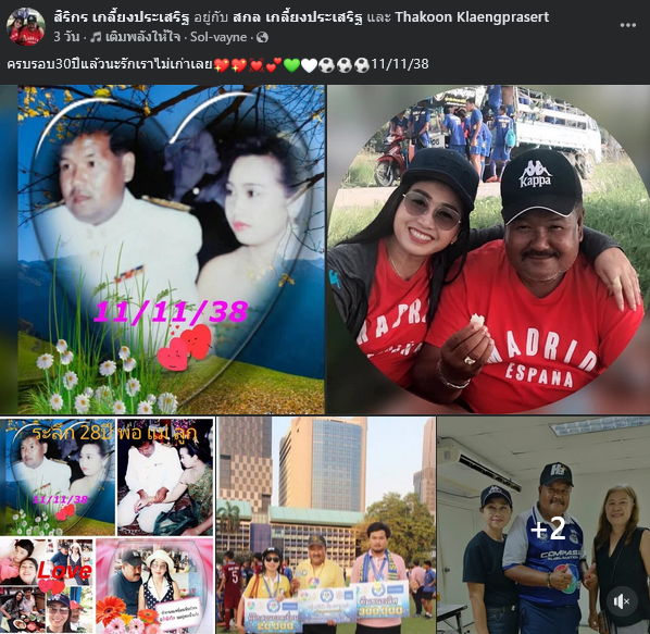 กระทั่งล่าสุด เมื่อวันที่ 11 พฤศจิกายน 2568 ที่ผ่านมา ภรรยาคนสวยของโค้ชสกล ก็ได้เผยภาพวันวิวาห์สุดประทับใจ ราวกับพาย้อนเวลากลับไป พร้อมข้อความอบอวลด้วยความรัก ผ่านเฟซบุ๊กส่วนตัว สิริกร เกลี้ยงประเสริฐ โดยข้ความระบุว่า ครบรอบ 30 ปีแล้วนะ รักของเราไม่เคยเก่าเลย 11/11/38