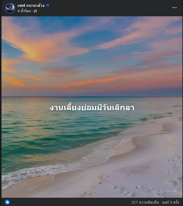 ต่อมาก็ได้โพสต์ข้อความอีกว่า งานเลี้ยงย่อมมีวันเลิกลา