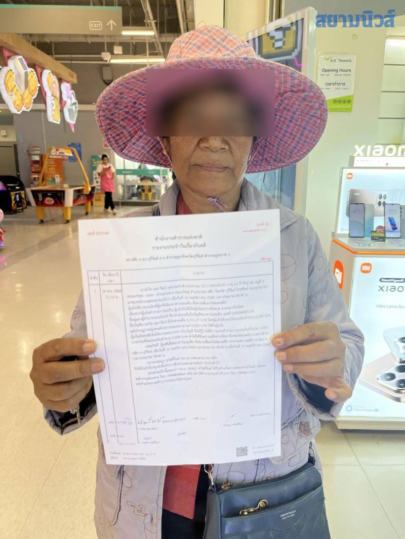 เมื่อโทรศัพท์หาลูกสาวที่ปทุมธานี ลูกได้ยืนยันมาว่าได้โอนมาให้แม่ 6,000 บาท จึงเอาสมุดบัญชีไปปรับที่ธนาคาร พบว่ามีการถอน 1,000 บาทก่อนแล้วค่อยถอน 5,000 บาท แสดงว่าหญิงสาวคนดังกล่าวได้โกงไป 1,000 บาท จึงไปแจ้งความไว้ที่ สภ.สตึก อ.สตึก เพื่อให้ตามสาวคนนั้นมาดำเนินคดี