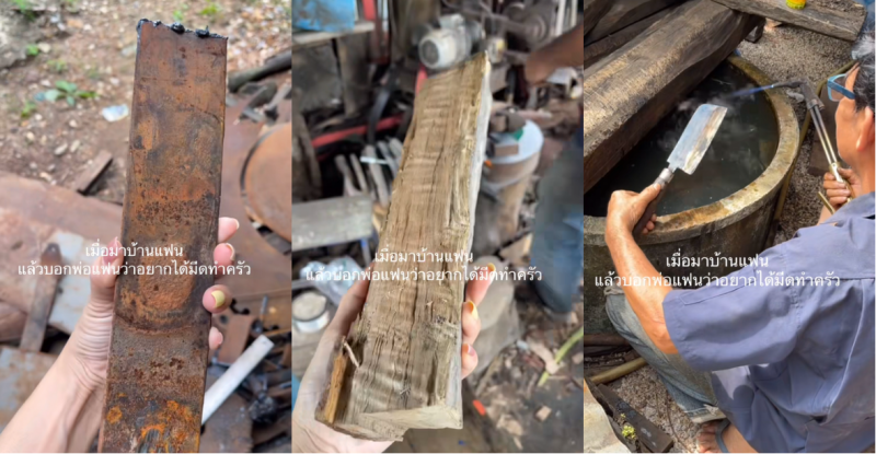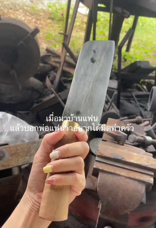 เมื่อวันที่ 16 พฤศจิกายน 2568 สมาชิก TikTok @kn.sunisa โพสต์คลิปหลังบอกพ่อสามีว่าต้องการมีดทำครัว เธอคิดว่าจะทำง่ายๆ แต่พอเห็นวิธีทำถึงกับอึ้ง ชาวเน็ตเห็นเหล็กแล้วชื่นชมบอกใช้ได้นานหลายชั่วลูกชั่วหลาน