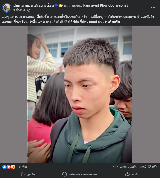 วันที่ 22 พ.ย. 68 ความเคลื่อนไหวหลังจากที่ หมอนทองวิทยา แพ้จุดโทษ สายมิตรศึกษา 1-4 หลังเสมอใน 90 นาที 1-1 ในศึกฟุตบอลกีฬานักเรียนนักศึกษาครั้งที่ 45 ทวารวดีเกมส์ รอบคัดเลือก หลังจบเกม เฟซบุ๊ก ป๊อก บ้านปูน ชาวบางยี่ขัน ซึ่งเป็นคุณพ่อของ แต๊งกิ้ว ปัญณวัฒน์ พงษ์บุญญพัฒน์ นักเตะหมายเลข 14 ของ หมอนทองวิทยา ได้ออกมาโพสต์สภาพใบหน้าของลูกชาย พร้อมข้อคิดดีๆ