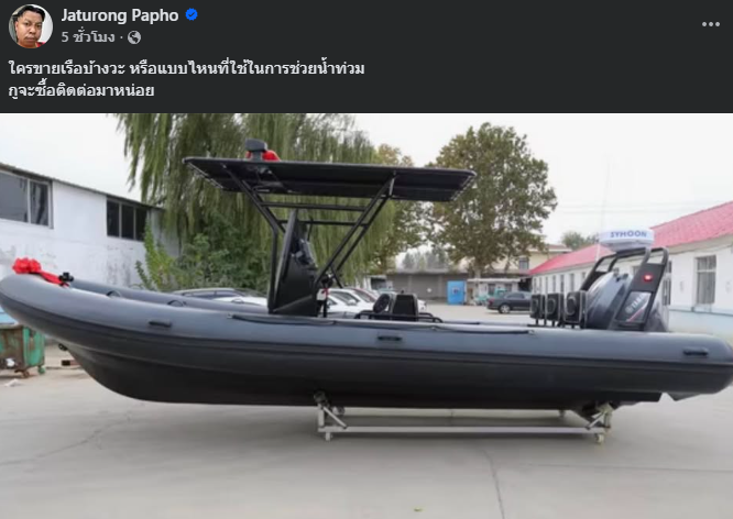 ล่าสุด วันที่ 25 พฤศจิกายน 2568 ยูทูบเบอร์ แจ็ก แปปโฮ ออกมาช่วยผู้ประสบภัย ประกาศผ่านเฟซบุ๊กส่วนตัว ใครขายเรือบ้างวะหรือแบบไหนที่ใช้ในการช่วยน้ำท่วม ...จะขอติดต่อมาหน่อย