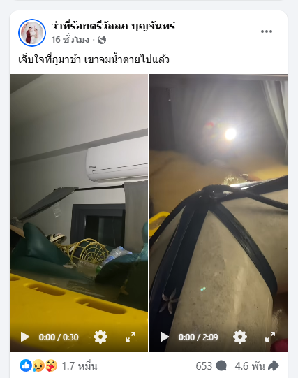 เป็นอีกหนึ่งเหตุการณ์สะเทือนใจจากเหตุน้ำท่วม อ.หาดใหญ่ จ.สงขลา ที่ถูกแชร์ในโลกออนไลน์เป็นจำนวนมากนะคะ เมื่อผู้ใช้เฟซบุ๊ก ว่าที่ร้อยตรีวัลลภ บุญจันทร์ หนึ่งในทีมเจ้าหน้าที่กู้ภัยจาก จ.ภูเก็ต ได้โพสต์คลิปวิดีโอขณะเข้าช่วยเหลือผู้ประสบภัยน้ำท่วมในพื้นที่หมูบ้านเดอะริช ต.บ้านพรุ อ.หาดใหญ่ จ.สงขลา ในเวลาประมาณ 1 ทุ่มของวันที่ 25 พฤษจิกายน ที่ผ่านมา พร้อมข้อความระบุว่า "เจ็บใจที่มาช้า เขาจมน้ำเสียชีวิตไปแล้ว"