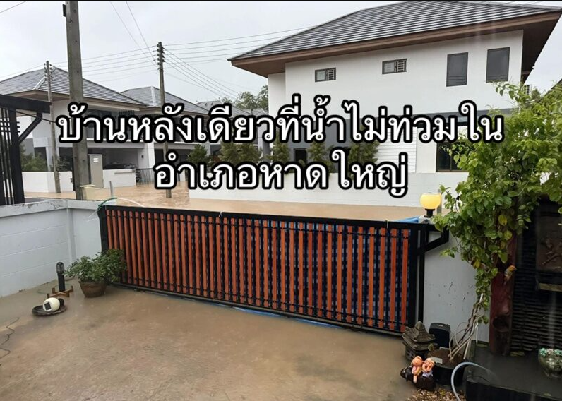 ในขณะที่หลายพื้นที่ในอำเภอหาดใหญ่ จังหวัดสงขลา กำลังเผชิญกับปัญหาน้ำท่วมหนัก แต่ปรากฏว่ามีบ้านหลังหนึ่งที่กลายเป็นไวรัลบนโลกออนไลน์ เนื่องจากเป็นบ้านหลังเดียวในย่านที่รอดพ้นจากน้ำท่วมอย่างน่าทึ่ง โดยผู้ใช้ TikTok ชื่อ AROY SELL EVERYTHING ได้โพสต์ภาพบ้านหลังดังกล่าวที่ถูกน้ำท่วมล้อมรอบ แต่ภายในตัวบ้านกลับไม่มีน้ำเข้า พร้อมแคปชั่นระบุว่า บ้านหลังเดียวที่น้ำไม่ท่วม ในอำเภอหาดใหญ่
