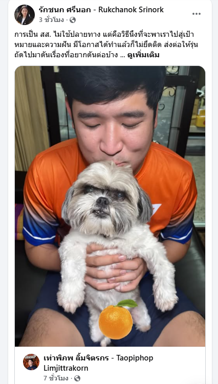 ล่าสุด ด้านไอซ์ รักชนก ศรีนอก ส.ส.หญิงพรรคประชาชน ได้ออกมาโพสต์ข้อความผ่านเพจเฟสบุ๊คส่วนตัว โดยระบุว่า การเป็น สส. ไม่ใช้ปลายทาง แต่คือวิธีนึงที่จะพาเราไปสู่เป้าหมายและความฝัน มีโอกาสได้ทำแล้วก็ไม่ยึดติด ส่งต่อให้รุ่นถัดไปมาดันเรื่องที่อยากดันต่อบ้าง นับถือพี่เท่า