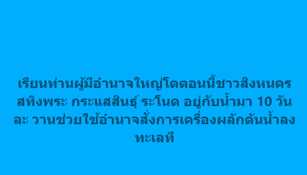 สาเหตุเริ่มจากผู้ใช้เฟซบุ๊กคนดังกล่าว โพสต์ขอความช่วยเหลือว่า เรียนท่านผู้มีอำนาจใหญ่โต ตอนนี้ชาวสิงหนคร สทิงพระ กระแสสินธุ์ ระโนด อยู่กับน้ำมา 10 วันแล้ว วานช่วยสั่งการเครื่องผลักดันน้ำลงทะเลที