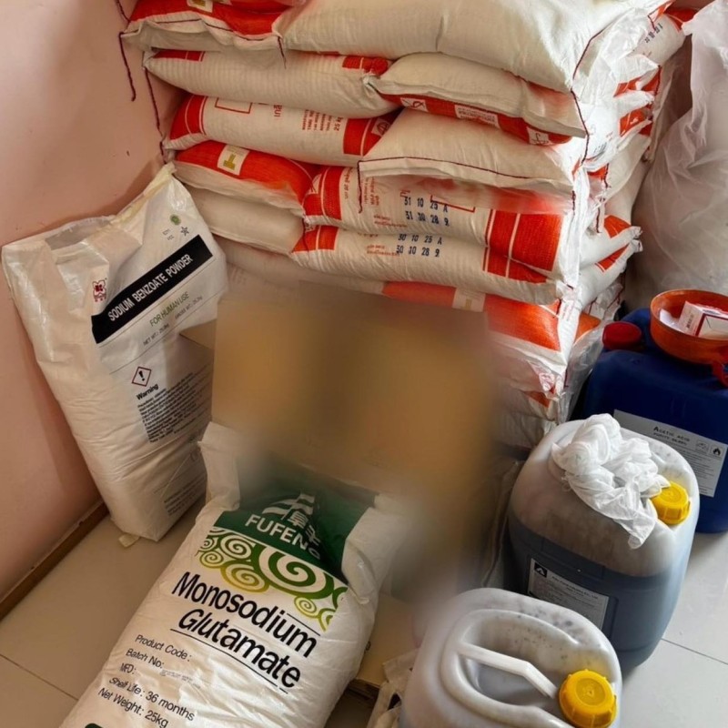 จากการเข้าตรวจค้นสามารถยึดของกลางได้รวมกว่า 122,333 ชิ้น ได้แก่ ซีอิ๊วปลอม กาแฟปลอม ผงชูรสปลอม วัตถุดิบสำหรับการผลิต เช่น สีคาราเมล กรดอะซิติก เกลือ และผงชูรส อุปกรณ์การผลิตขนาดใหญ่ เช่น ถังผสม เครื่องผสม ขวดเปล่าที่รวบรวมมาจากร้านรับซื้อของเก่า รวมทั้งฉลากปลอมอีกนับแสนชิ้น สินค้าปลอมทั้งหมดผลิตในสภาพแวดล้อมที่ไม่ถูกสุขลักษณะ ไม่มีการควบคุมคุณภาพ และอาจปนเปื้อนสารอันตรายที่เป็นอันตรายต่อผู้บริโภค