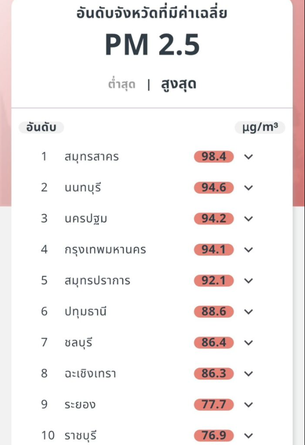 สำหรับ พื้นที่ กทม. เช้าวันนี้ พบว่าทุกเขตมีค่าฝุ่น PM2.5 เกินมาตรฐานระดับสีแดง เช่น หนองแขม บางบอน บางแค ทวีวัฒนา บางขุนเทียน ภาษีเจริญ จอมทอง ตลิ่งชัน ทุ่งครุ ธนบุรี บางกอกใหญ่ ราษฎร์บูรณะ บางกอกน้อย บางคอแหลม คลองสาน เป็นต้น ทั้งนี้ เมื่อช่วงเวลา 05.00 น. ที่ผ่านมา ทุกเขตของ กทม. ก็พบค่าฝุ่น PM2.5 เกินมาตรฐานระดับสีแดงเช่นกัน