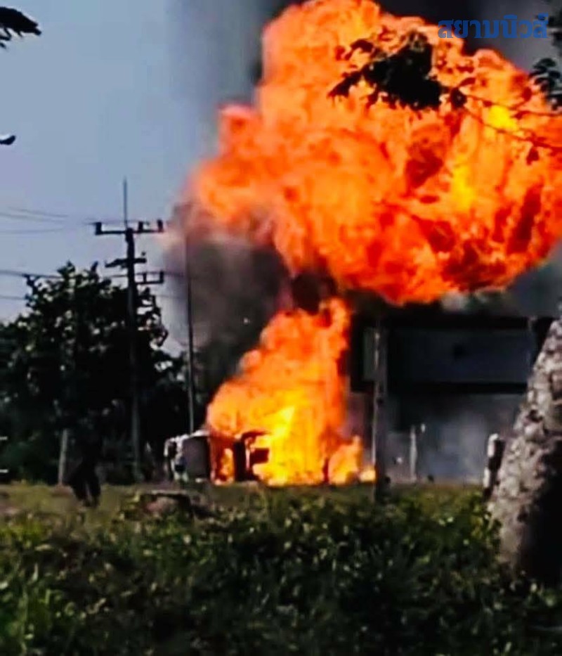 หลังจากได้รับแจ้ง รีบออกไปยังจุดเกิด พบหน่วนกู้ภัยและชาวบ้านกำลังช่วยกันเร่งดับไฟที่กำลังไหม้รถยนต์กระยี่ห้อโตโยต้า หมายเลขทะเบียน บจ.7873 อุดรธานี อุบัติเหตุรถยนต์กระบะคอกบรรทุกถังแก๊สหุงต้ม พลิกคว่ำไฟลุกท่วมทั้งคัน มีการระlบิดอย่างต่อเนื่อง ในที่เกิดเหตุมีผู้ได้รับบาดเจ็บ 1 ราย เพศชาย