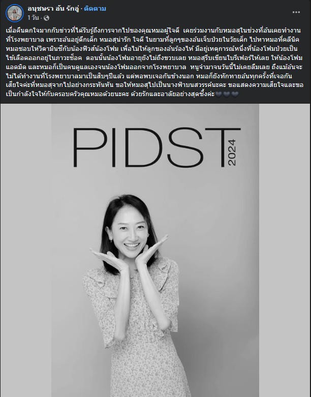 ผู้โพสต์ทิ้งท้ายด้วยความอาลัยว่า เสียใจมากที่หมอสุจากไปอย่างกะทันหัน ขอให้หมอสุไปเป็นนางฟ้าบนสวรรค์นะคะ ขอแสดงความเสียใจและเป็นกำลังใจให้ครอบครัวคุณหมอด้วยค่ะ ด้วยรักและอาลัยอย่างสุดซึ้ง