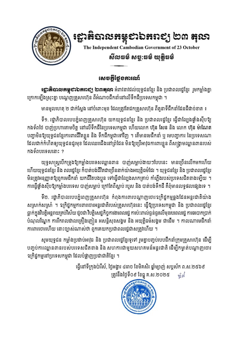 2. ระบอบการปกครองโดยตระกูลฮุน กำลังปกป้องเครือข่ายอาชญากรรมข้ามชาติระหว่างประเทศ ฉุดรั้งกัมพูชาให้ตกอยู่ในวิกฤตในทุกภาคส่วน โดยเฉพาะด้านเศรษฐกิจ เกิดขบวนการหลอกลวงทางการเงิน ต้องติดกับดักหนี้สิน ปัญหายาเสพติด และ ความไม่เป็นธรรมในสังคม