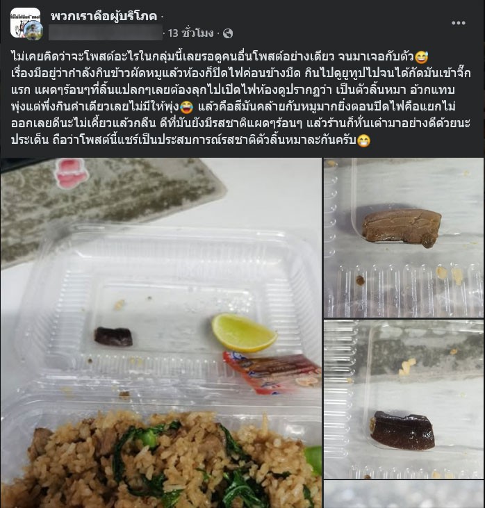 เมื่อไม่นานมานี้ โลกออนไลน์มีการแชร์ภาพเรื่องราวของผู้ใช้เฟซบุ๊กรายหนึ่งซึ่งได้โพสต์ลงในกลุ่ม พวกเราคือผู้บริโภค ที่ได้เล่าเรื่องราวหลังจากที่ได้ซื้อข้าวผัดมาทาน โดยระบุว่า