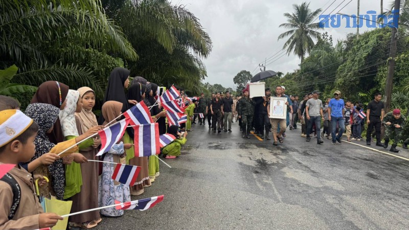 ได้ยืนของ 2 ถนนพร้อมกับได้โบกธงชาติไทย ต้อนรับร่างไร้วิญญาณของ พลอาสาสุตากีม มาเจ๊ะมะ พลยิงอาวุธต่อสู้รถถัง กองพันจู่โจม ซึ่งเสียชีวิตจากการปฏิบัติหน้าที่สู้รบกับกัมพูชา ณ พื้นที่ซำแต บริเวณเนิน 677 ช่องอานม้า อ.น้ำยืน จ.อุบลราชธานี เมื่อช่วงบ่ายของวันที่ 13 ธ..ค.68 ที่ผ่านมา ที่ทางกรมทหารราบที่ 151 ค่ายกัลยาณิวัฒนา