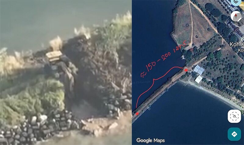 ซึ่งเขื่อนดักตะกอนดังกล่าว จะทำให้ทางฝั่งกัมพูชา มีพื้นที่ทั้งทางบกและทางทะเลเพิ่มขึ้น และจะทำให้กระแสน้ำทำลายพื้นที่ของหน่วยนาวิกโยธิน 182 มีการกัดเซาะของน้ำทะเลบริเวณริมตลิ่ง