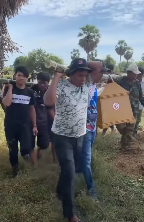 วันนี้ (21 ธ.ค. 2568) เพจเฟซบุ๊ก มังกร ซ่อนตัว ได้มีการโพสต์คลิป พีธีฌาปนกิจศพของทหารฝ่ายกัมพูชา พร้อมระบุข้อความว่า ทหารกัมพูชาที่เสียชีวิตจากเหตุปะทะ หากเพื่อนทหารยังสามารถลำเลียงร่างออกจากพื้นที่การสู้รบได้ ศพจะถูกนำกลับมาส่งให้ญาติพี่น้องเพื่อประกอบพิธีทางศาสนา จากภาพคลิปวิดีโอเผยให้เห็นพิธีฝังอย่างเรียบง่ายท่ามกลางญาติ มิตรสหาย และคนในหมู่บ้าน