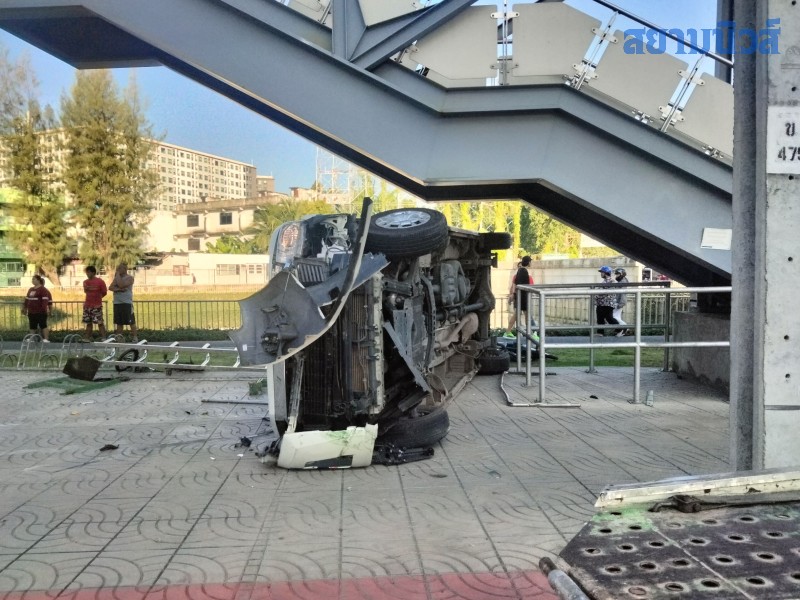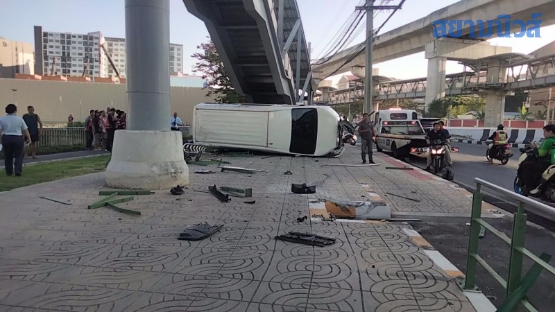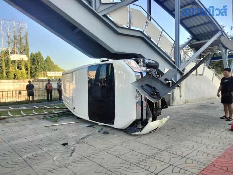 ที่เกิดเหตุอยู่ฝั่งถนนพหลโยธิน มุ่งหน้าสะพานใหม่ พบรถตู้โดยสาร ยี่ห้อโตโยต้า สีขาว สภาพหน้ารถพังยับ พลิกคว่ำตะแคงขวาอยู่บนฟุตปาธ บริเวณใต้บันไดทางขึ้นรถไฟฟ้าสถานีวัดพระศรีฯ ทำให้ผู้ขับขี่ได้รับบาดเจ็บท่อนขาติดคาอยู่ใต้คอนโซนหน้ารถ เจ้าหน้าที่จึงช่วยเหลือนำตัวออกมาได้