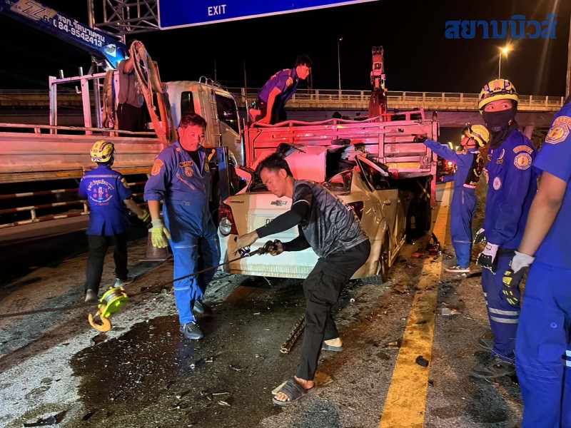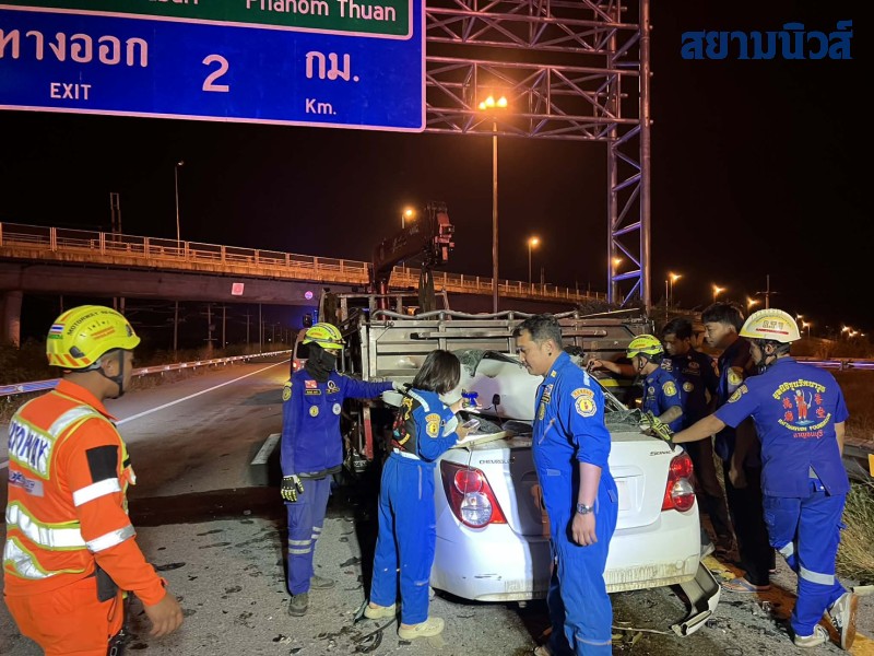 ส่วนอีกรายเป็นชาย อายุ 44 ปี คนขับรถเก๋ง เสียชีวิตในที่เกิดเหตุ โดยพบร่างอยู่บริเวณหลังพวงมาลัย เจ้าหน้าที่ได้ประสานแพทย์เวรและพนักงานสอบสวนเข้าตรวจสอบอย่างละเอียด