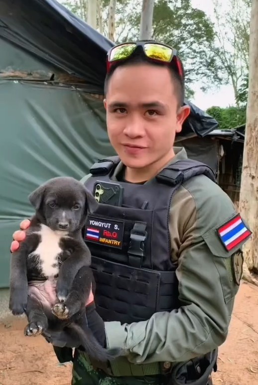 แต่ต่อให้ทหารไทยจะกำยำแข็งแรง ใส่ชุดทหารลายพราง แต่หมาเด็กเข้าไปเป็นอันต้องใจเหลวทุกที ทหารไทยเข้มแข็งและอบอุ่น