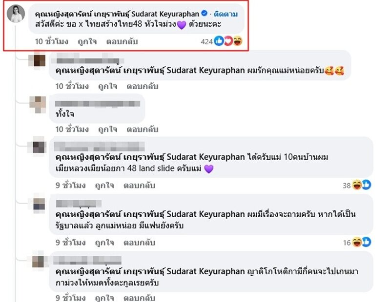 โดย เฟซบุ๊ก Viravat Dew โพสต์ภาพ จินนี่ พร้อมแคปชั่นว่า แม่หน่อยคร้าบ ท่ามกลางคอมเมนต์เข้ามาชมความน่ารักของสาวจินนี่ ทั้งนี้ คุณหญิงสุดารัตน์ ก็มาคอมเมนต์ด้วยว่า สวัสดีค่ะ ขอ x ไทยสร้างไทย48 หัวใจม่วง ด้วยนะคะ โดยก็มีคอมเมนต์เข้ามาพร้อมกาไทยสร้างไทย