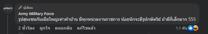 ทางเพจดังยังได่แสดงความคิดเห็นเพิ่มเติมว่า รูปฮุนเซนกับเมียใหญ่เท่าฝาบ้าน มีทุกหน่วยงานราชการ น้อยนักจะมีรูปกษัตริย์ ถ้ามีก็เล็กมาก 555