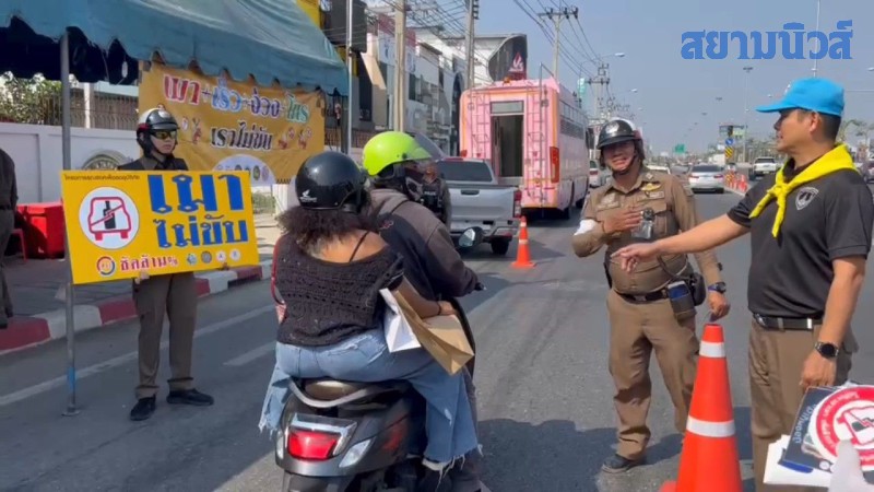 แนะ 4 ข้อห้าม ห้ามขับรถเร็ว ห้ามเมาแล้วขับ ห้ามโทรแล้วขับรถ ง่วงห้ามขับ แนะ2ต้อง ต้องสวมหมวกนิรภัย ต้องคาดเข็มขัดนิรภัย และทางเจ้าหน้าที่ตำรวจได้ทำการแจกสติ๊กเกอร์เมาแล้วขับ ให้ประชาชนไว้เป็นที่เตือนใจเพื่อลดอุบัติเหตุ