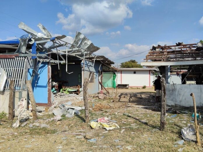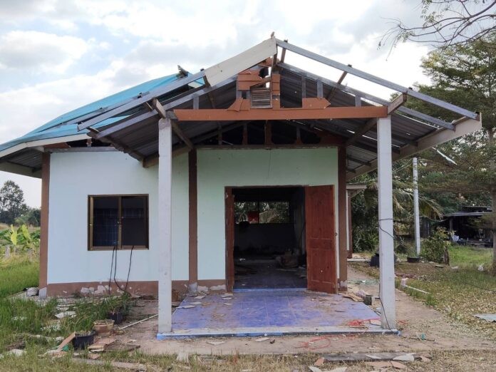 สภาพบ้านถูกระเบิด BM21 และลูกปืน ค. ตกใส่ ทำให้บ้านเสียหายเกือบทั้งหลัง ทั้งหลังคา ประตู หน้าต่าง ฝ้าเพดาน และสิ่งของภายในบ้านพังเสียหายยับเยิน ขณะที่บ้านอีกหลังซึ่งสร้างเป็นร้านค้าสำหรับขายของชำ ถูกลูกระเบิดจนเสียหายเกือบครึ่งหลัง กำแพงปูนพังราบเข้าไปในบริเวณบ้าน ทับสินค้าและข้าวของเสียหายจำนวนมาก