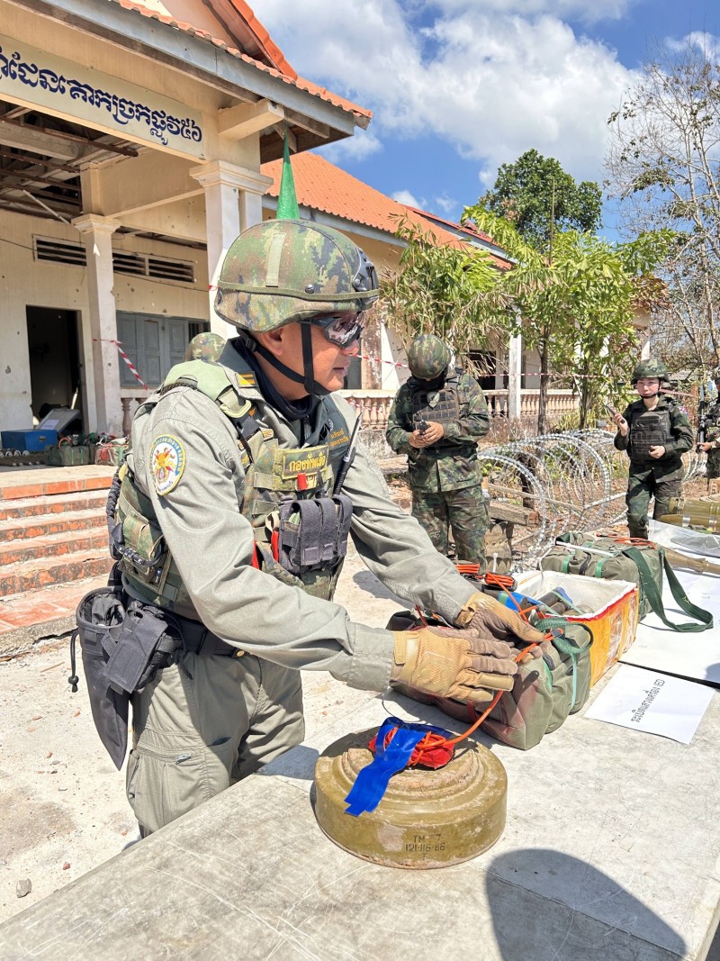 ภายในพบ ทุ่นระเบิดสังหารดัดแปลง ทั้งจากทุ่นรถถังและกระสุนปืนใหญ่ จุดชนวนด้วยระบบไฟฟ้า เข้าข่ายอาวุธต้องห้าม ละเมิดอนุสัญญาออตตาวาอย่างชัดเจน กองทัพเรือย้ำ การยึดอาวุธทำเพื่อความปลอดภัย ของกำลังพลและประชาชนชายแดน และเป็นไปตามกฎหมายระหว่างประเทศ ขณะที่การครอบครองอาวุธต้องห้าม ใกล้แนวชายแดน กลับบ่อนทำลายความเชื่อมั่น และขัดข้อตกลง GBC อย่างร้ายแรง