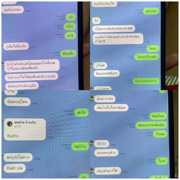 แต่สุดท้ายผู้หญิงก็ถ่อมาหาถึงที่ ฝ่ายชายให้คำพูดหวาน แต่สถานะจริงไม่เคยชัดเจน อันนี้รสลองคัดบางช่วงของบทสนทนาในแชทของเขาสองคนมาให้อ่าน แล้วลองคิดดูว่า ถ้าเป็นเราที่เป็นภรรยา แล้วมาเจอแชทแบบนี้ จะรู้สึกยังไง