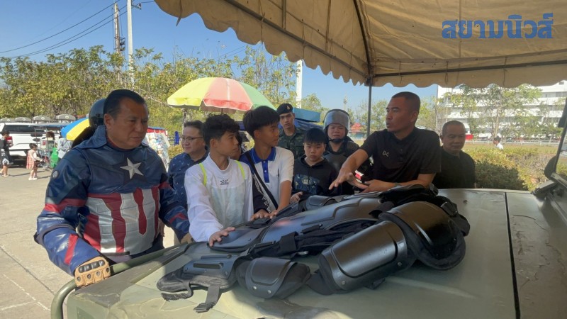 ในขณะที่กองทัพทหารสื่อสารที่ 13 กองพลทหารปืนใหญ่ต่อสู้อากาศยานที่ได้นำ รถลาดตระเวนเอ็ม 50 พร้อมชุดเกาะของทหารนำออกมาให้เด็กได้รับชมกัน ซึ่งมีเด็กและเยาวชนให้ความสนใจเป็นอย่างมากต่างขอให้เจ้าหน้าที่ทหารชุวยสวมชุดแกะให้เพื่อถ่ายรูปเป็นที่ระลึกอีกด้วย ในส่วนที่สร้างความฮาให้กับผู้ปกครองและเด็กกันเป็นจำนวนมากคือทางด้านนายสมบูรณ์ ปานย้อย นายกเทศมนตรีตําบลบ้านใหม่ที่แต่งกายเป็น ซุปเปอร์ฮีโร่ภาพยนตร์เรื่องดังเรื่องกัปตันอเมริกา ที่ได้เดินออกไปต้อนรับเด็กๆพร้อมกับถ่ายรูปกับเด็กๆที่เจ้ามาเที่ยวงานในครั้งนี้