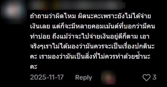 ฝั่งที่สองสนับสนุน มองว่า กินก่อนก็จริง แต่ถ้าจ่ายเงินก็ไม่มีปัญหา เหมือนกับมาม่าที่ให้ทางร้านต้มให้ก่อน สุดท้ายก็จ่ายเงินอยู่ดี